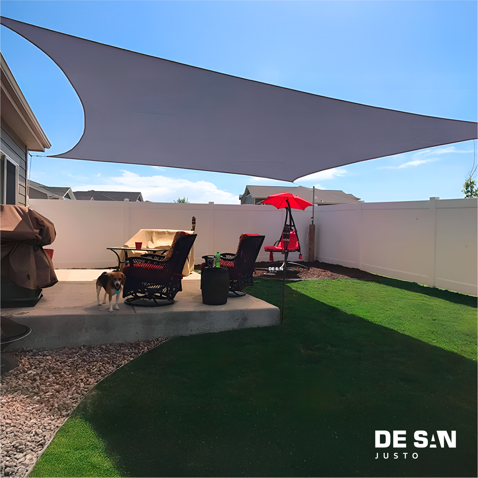 Toldo Vela Decorativa rectangular de 4×3 metros de tela media sombra Premium 90% de ocultamiento y 100 grs/m2 con costura perimetral reforzada y media luna de acero cincado en los extremos.