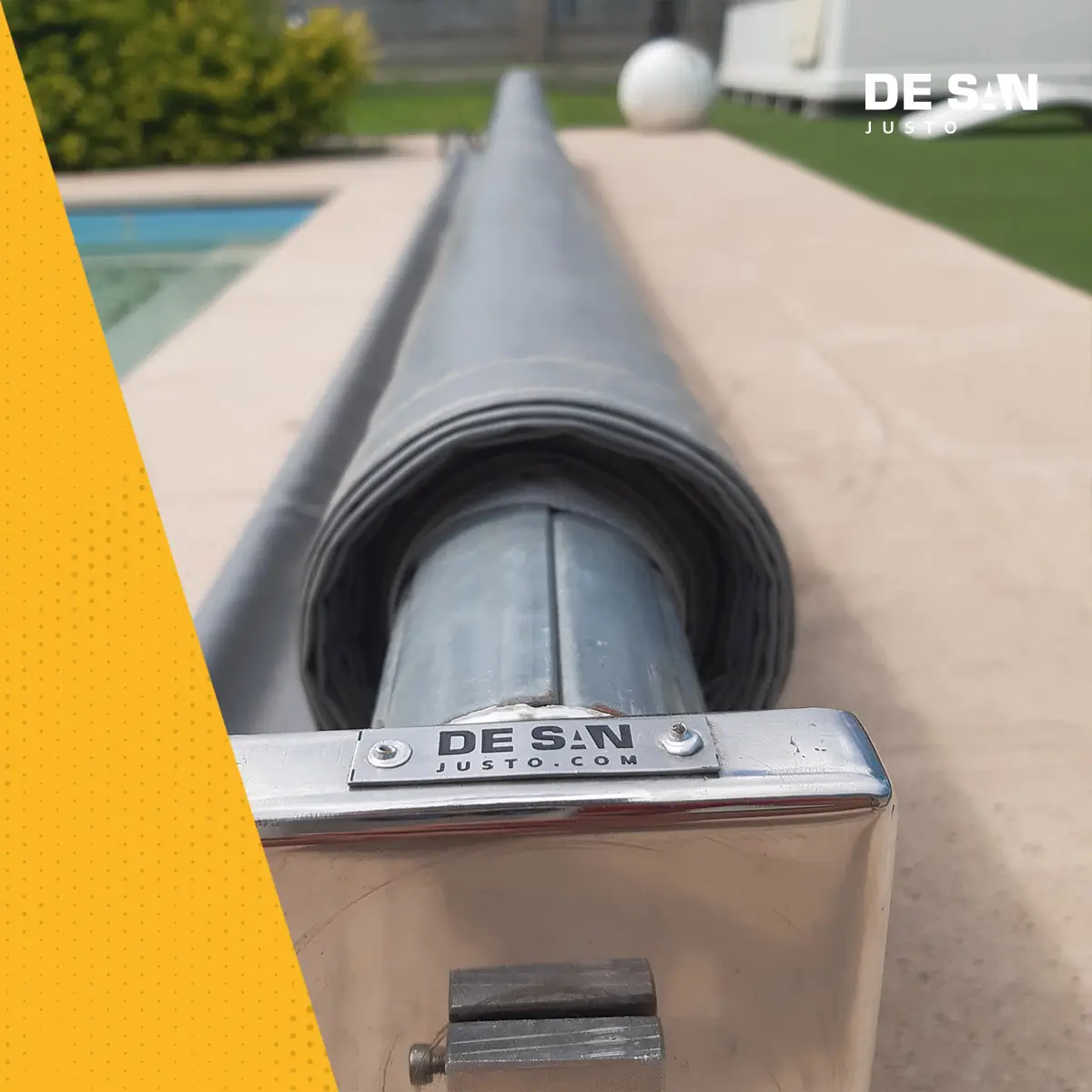 Kit Cubrepileta Cobertor Lona Lisa PVC + Enrollador Acero Inoxidable